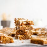 Chewy vanilla blondies are made extra special with the addition of Rodelle’s vanilla paste, brown sugar, plenty of butter, and butterscotch chips inside the dough. Once spooned into the baking pan, the blondies are baked until GBD (golden, brown, and delicious. The crackly, chewy tops of each vanilla blondie square are drizzled with a speckled vanilla bean glaze. These make for the perfect after-school snack.