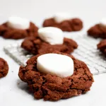 These cookies taste just like hot cocoa. Sweet and chocolatey with a hint of vanilla and to top it off, a marshmallow placed right in the center!